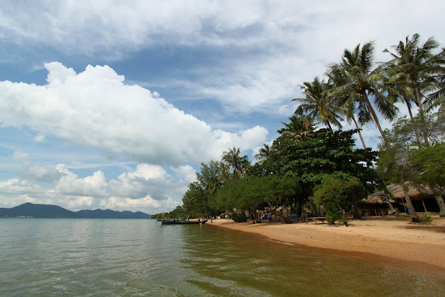 We continued on, cutting off a corner and coming to another beach, just a few shacks with a couple of families going about their business in a slow, leisurely and very island like way. The beach was long and lined with the most beautiful palm trees.